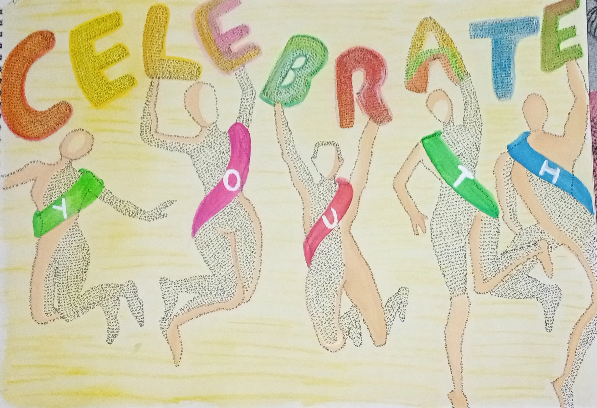 "'The fact or state of being young' by Google. My drawing represents youth by the way they are all same in terms of body and mind but are coloured differently because as youth we all are unique and different. Be unique be you.”